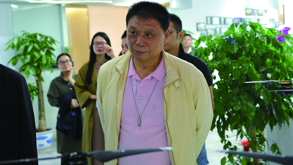 熊總介紹生產(chǎn)車間里正在組裝的全包殼無(wú)人機(jī)